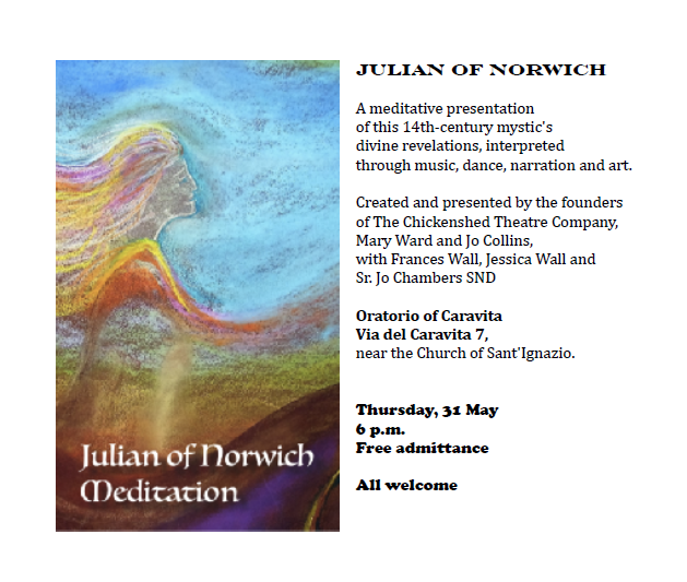 Julian of Norwich - Meditation Published 15 May 2018 A meditative presentation of this 14th-century mystic’s divine revelations, interpreted through music, dance, narration and art… Leave a Reply Cancel reply Your email address will not be published. Required fields are marked *Comment Name * Email * Website Recaptcha Change Image Notify me of follow-up comments by email. Notify me of new posts by email.